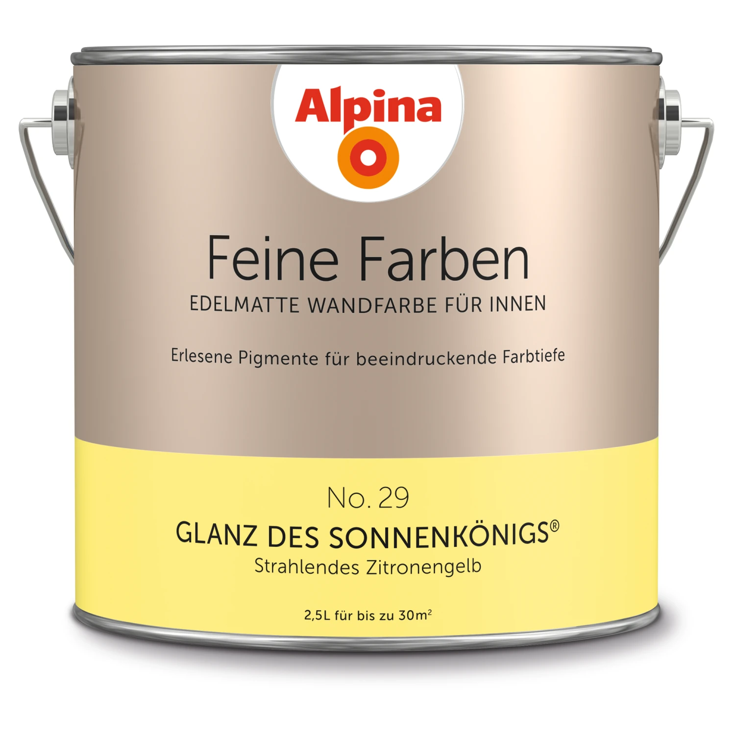Die Wandfarben aus der “Feine Farben”-Linie aus dem Hause Alpina verleihen Deinem Zuhause einen besonderen und persönlichen Charakter. Bei einem Anstrich im Innenbereich kommt es allerdings nicht nur auf den Farbton, sondern auch auf die Farbqualität an. Mit den Alpina “Feine Farben” hast Du die richtige Wahl getroffen. Diese punkten mit intensiven Pigmenten, die eine tolle Farbtiefe und eine lange Farbbeständigkeit versprechen. Außerdem ist die mit dem “Blauer Engel”-Siegel ausgezeichnete Wandfarbe besonders ergiebig – der Inhalt reicht bei einem einmaligen Anstrich für eine Wandfläche von 30 m². Achte vor der Anwendung darauf, dass die zu bestreichenden Oberflächen sauber, trocken und tragfähig sind. Bei kontrastreichen Flächen empfiehlt sich ein Voranstrich in Alpinaweiß.