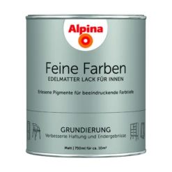 Beschichtungen sind in vielen Projekten nützlich. Vielleicht auch in deinem? Die Universalgrundierung ‘Feine Farben’ von Alpina kann auf verschiedenen Untergründen verwendet werden. Du kannst mit dem Inhalt von 0,75 l bei einem einmaligen Anstrich größere Flächen bis zu 10 m² behandeln. Das Anstrichmittel verleiht der Oberfläche eine transparente Optik. Mit seiner Wasserbasis ist es darüber hinaus nahezu geruchslos. 8 Stunden nach dem Anstrich ist die Universalgrundierung zu guter Letzt getrocknet.