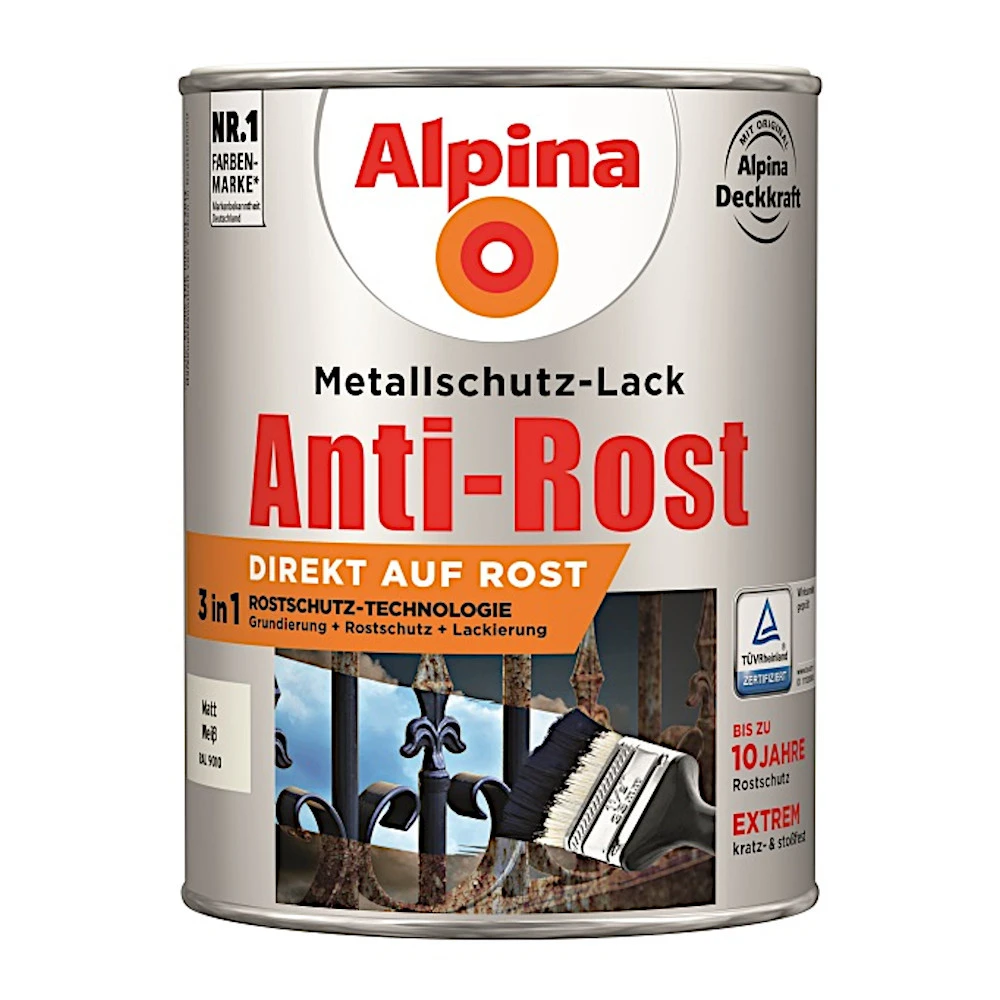 - 1x Alpina Rost Metallschutz-Lack Weiss RAL 9010 matt 2,5 Liter