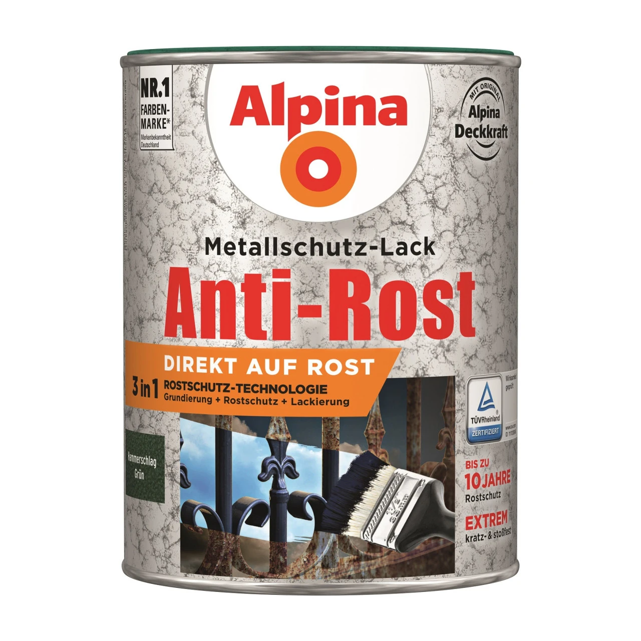 - 1 x Alpina Metallschutz-Lack Grün RAL 6036 Hammerschlag 2,5 Liter