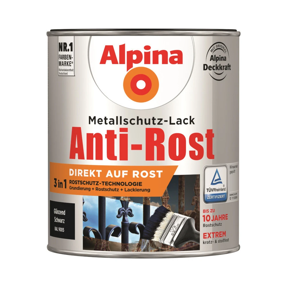 - 1 x Alpina Rost Metallschutz-Lack Schwarz RAL 9005 glänzend