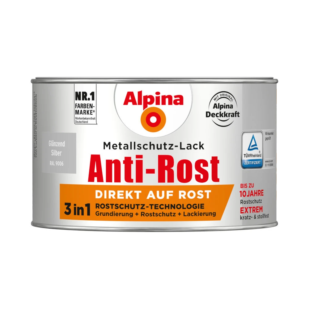 - 1x Alpina Rost Metallschutz-Lack Silber RAL 9006 glänzen