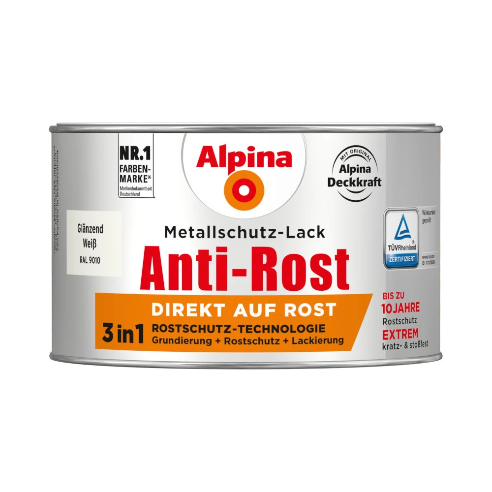 - 1x Alpina Rost Metallschutz-Lack Weiss RAL 9010 glänzend