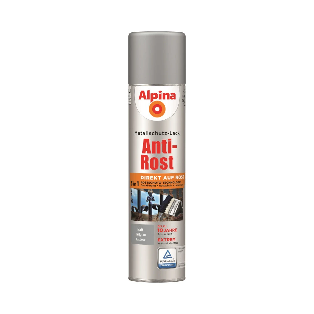 - 1x Alpina Rost Metallschutz-Sprühlack Hellgrau RAL 7001 matt