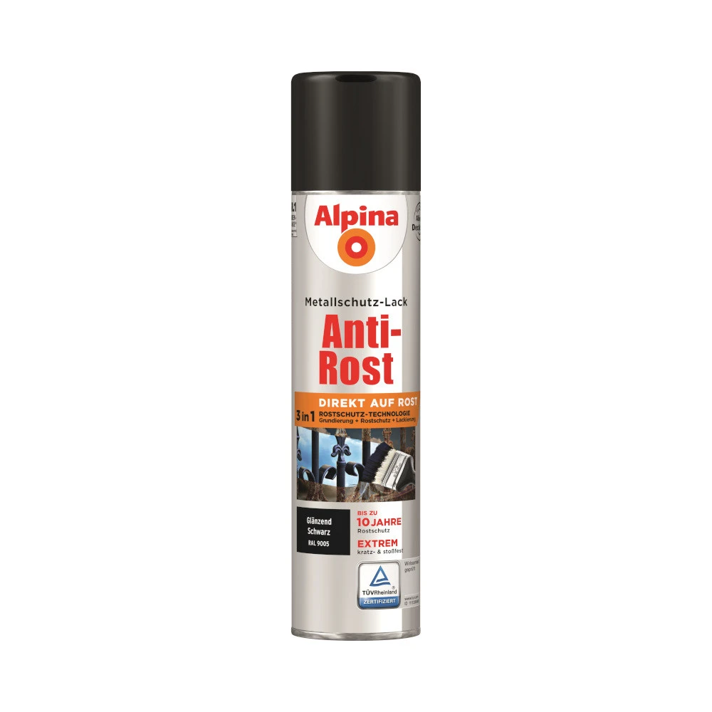 - 1 x Alpina Rost Metallschutz-Sprühlack Schwarz RAL 9006 glänzend