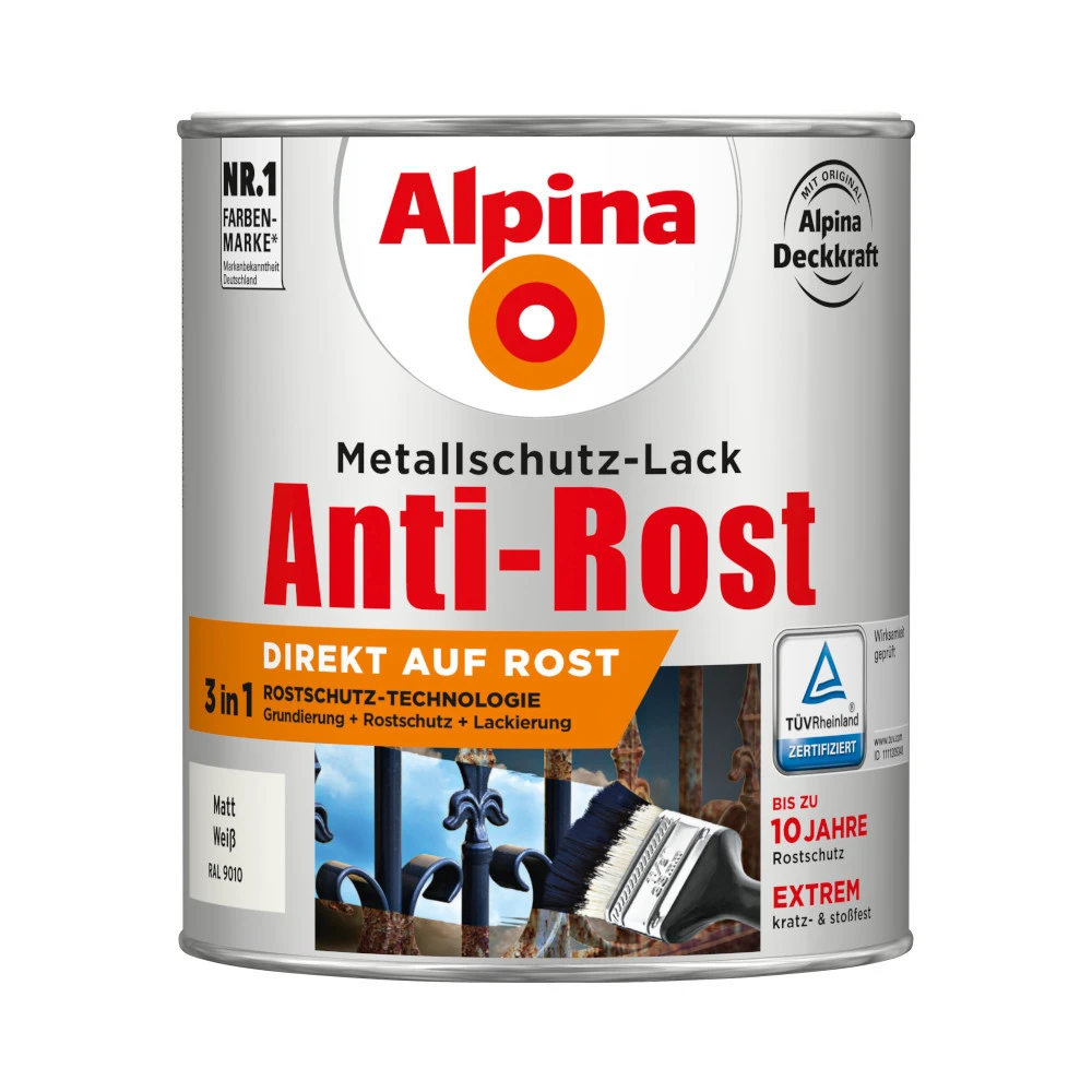 - 1 x Alpina Metallschutzlack Matt Weiß RAL 9010, 750 ml