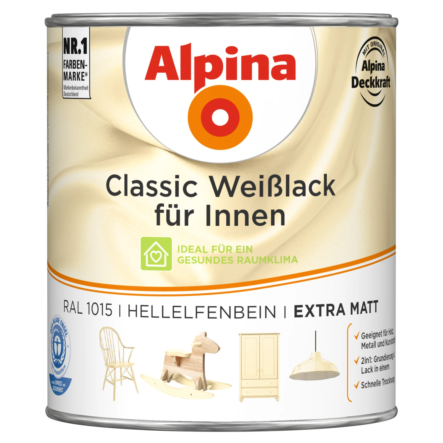 Alpina Classic Weißlack schafft hochwertige, langlebige Lack-Flächen mit brillanter Farbwirkung. Durch seine edle Farbe und seinen guten Verlauf beim Lackieren eignet er sich besonders für gestalterisch anspruchsvolle Neu- und Renovierungsansprüche wie Tische, Stühle, Kommoden, Regale und Schränke. Der Classic Weißlack eignet sich für Holz, Metall und Kunststoff. Er ist zudem hoch deckend und umweltschonend.