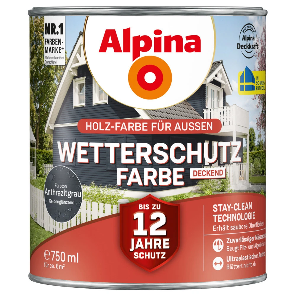 - 1 x Alpina Wetterschutzfarbe 750 ml Anthrazitgrau