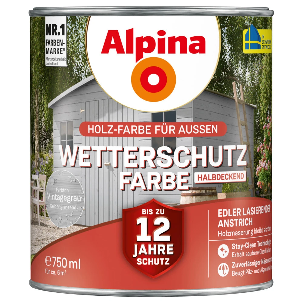 - 1 x Alpina Wetterschutzfarbe halbdeckend 750 ml Vintagegrau